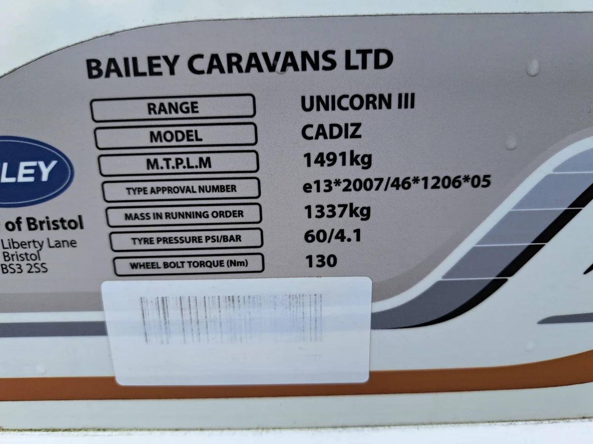 Including Gas bottle, Gas pigtail, Leisure Battery, 25 Metre mains cable, Aquaroll, Wastemaster, Hitch Lock, Number Plate and Step.