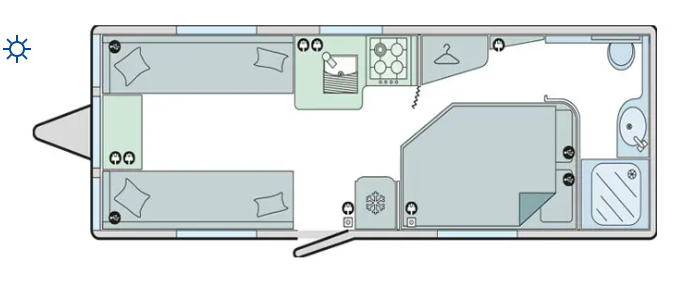 Including Gas bottle, Gas pigtail, Leisure Battery, 25 Metre mains cable, Aquaroll, Wastemaster, Hitch Lock, Number Plate and Step.