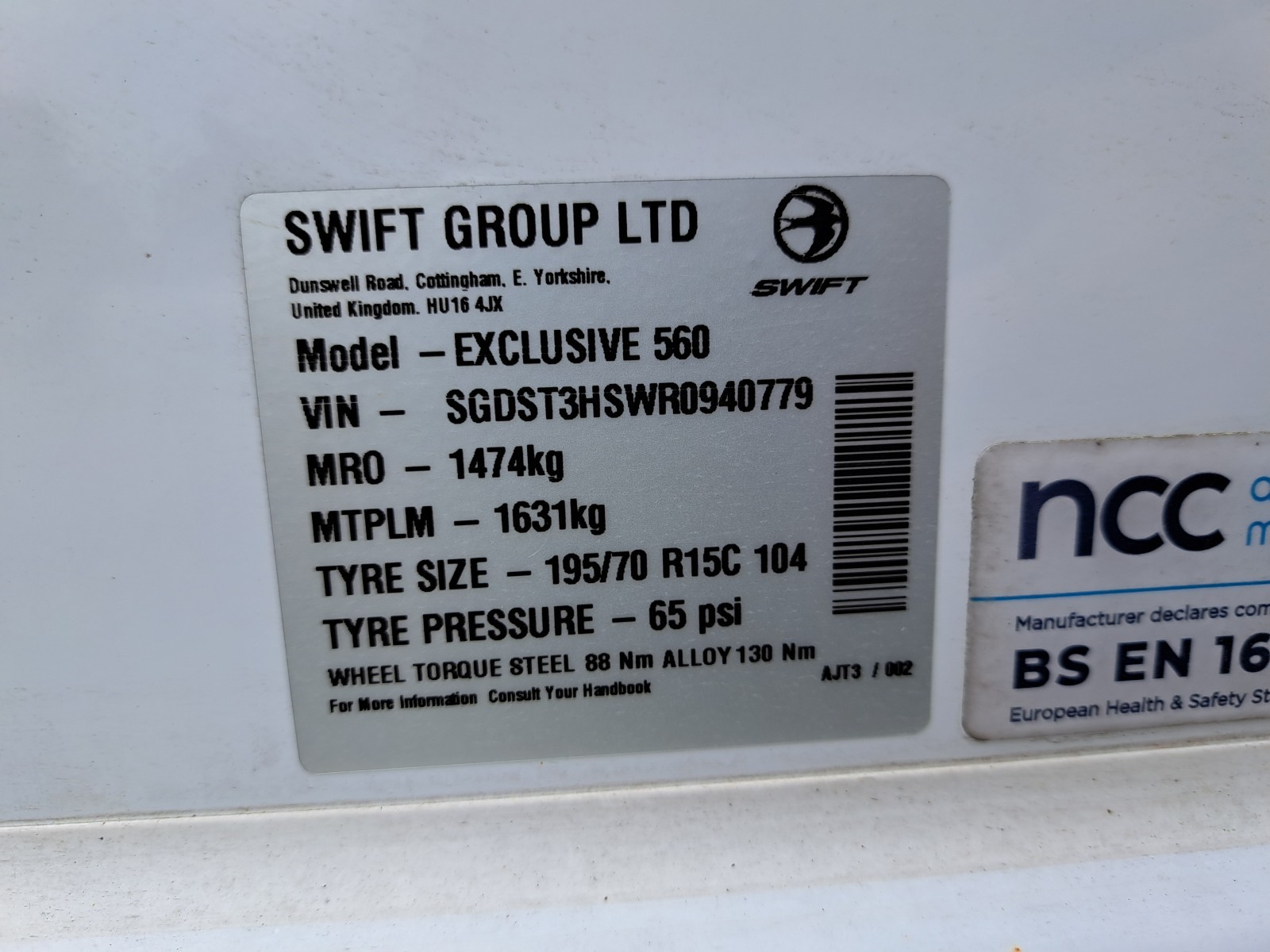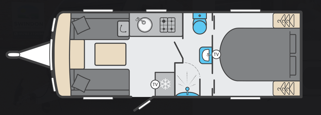 Including Gas bottle, Gas pigtail, Leisure Battery, 25 Metre mains cable, Aquaroll, Wastemaster, Hitch Lock, Number Plate and Step.
