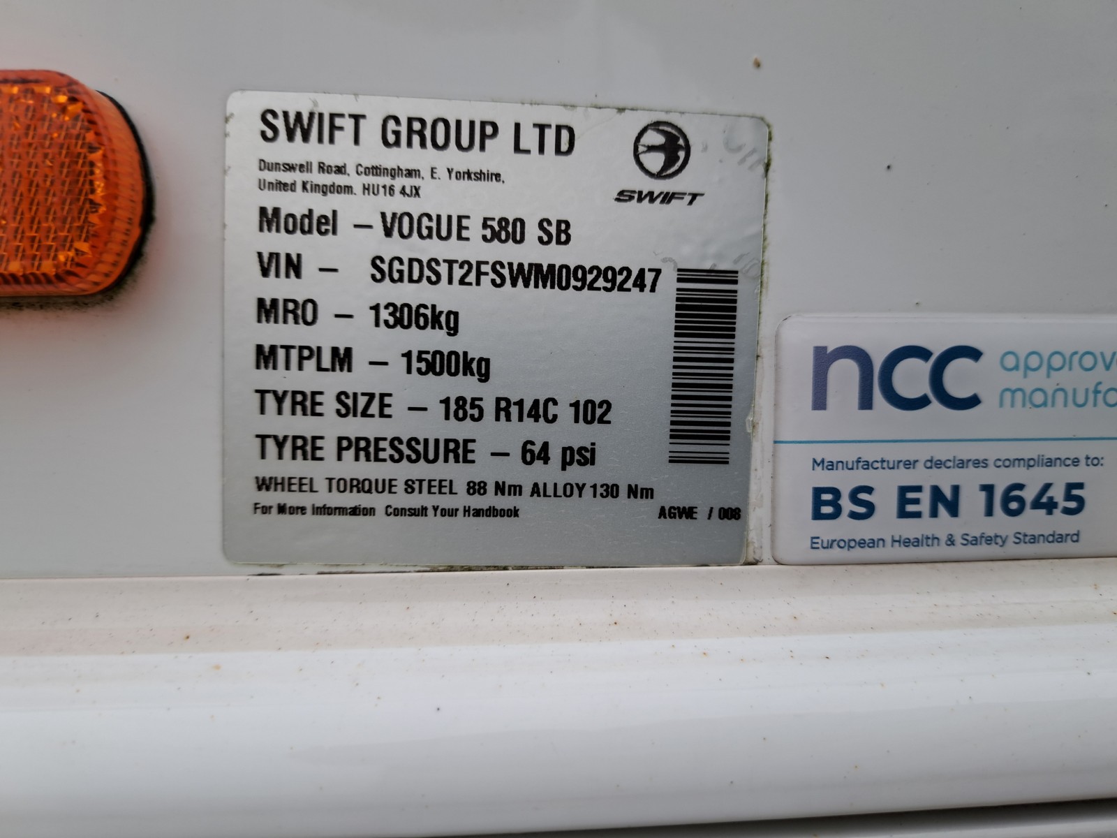 Including Gas bottle, Gas pigtail, Leisure Battery, 25 Metre mains cable, Aquaroll, Wastemaster, Hitch Lock, Number Plate and Step.