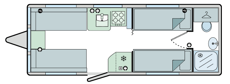 Including Gas bottle, Gas pigtail, Leisure Battery, 25 Metre mains cable, Aquaroll, Wastemaster, Hitch Lock, Number Plate and Step.