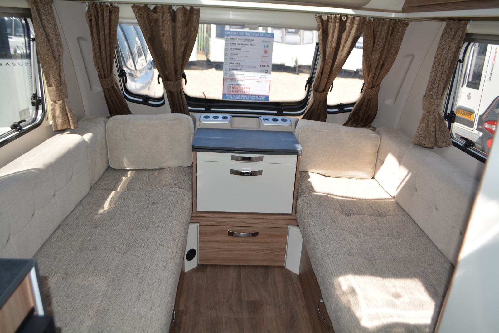 Including Gas bottle, Gas pigtail, Leisure Battery, 25 Metre mains cable, Aquaroll, Wastemaster, Hitch Lock, Number Plate and Step.