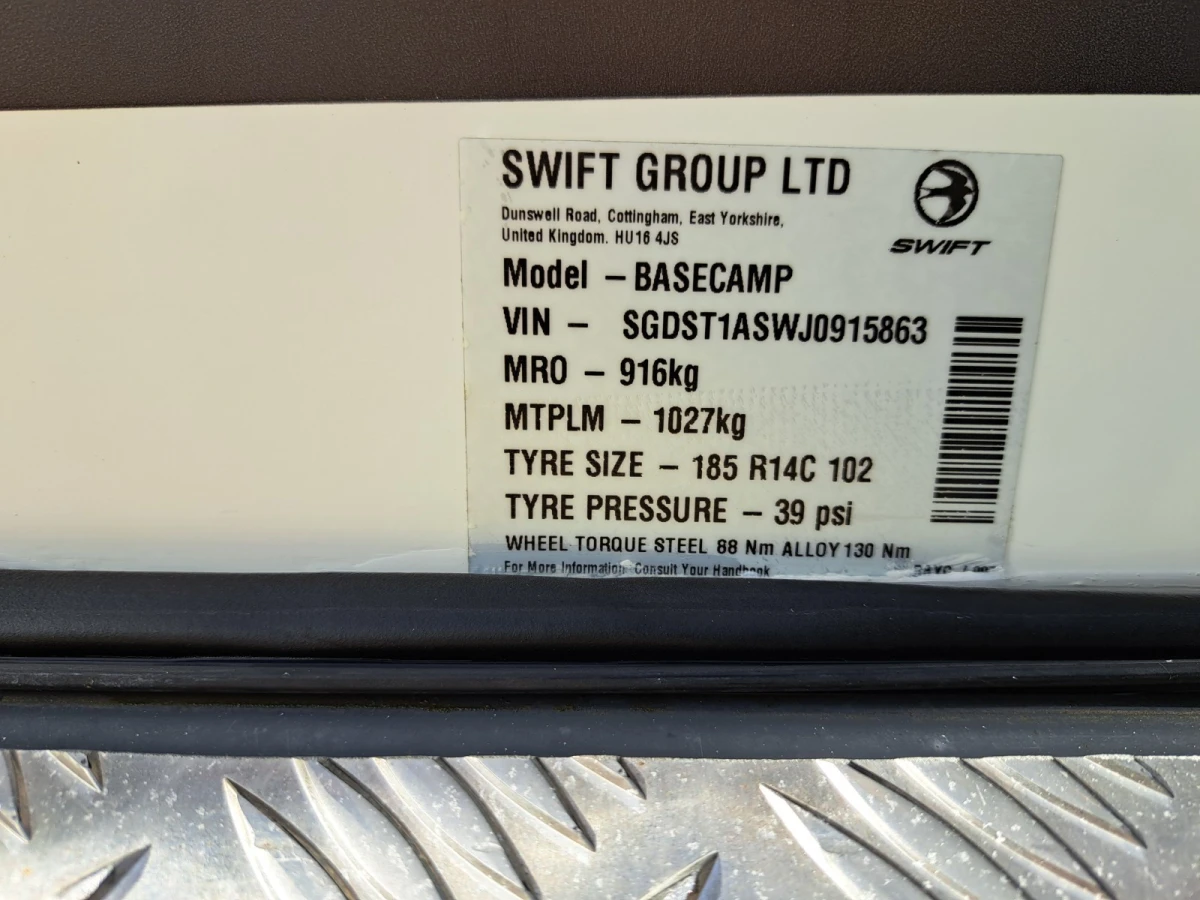 Including Gas bottle, Gas pigtail, Leisure Battery, 25 Metre mains cable, Aquaroll, Wastemaster, Hitch Lock, Number Plate and Step.