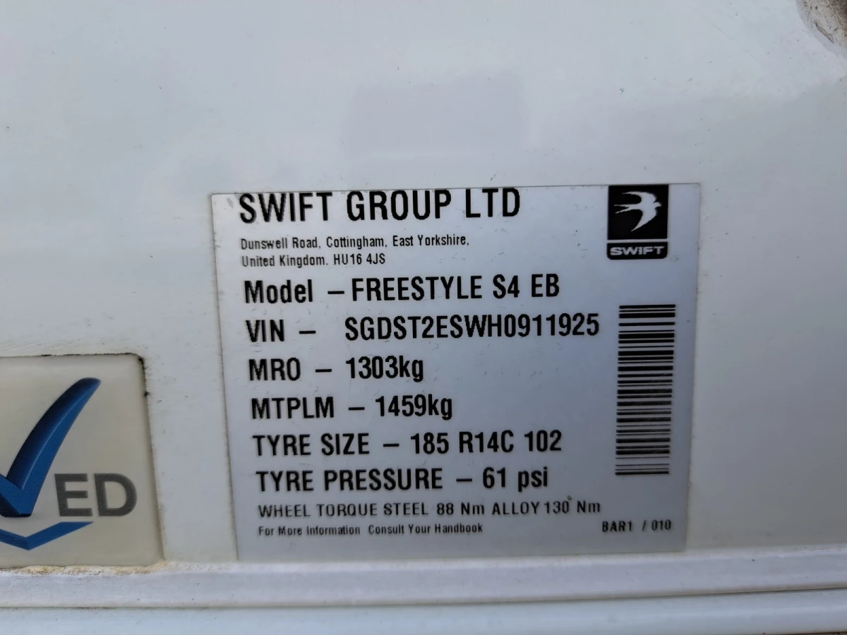 Including Gas bottle, Gas pigtail, Leisure Battery, 25 Metre mains cable, Aquaroll, Wastemaster, Hitch Lock, Number Plate and Step.
