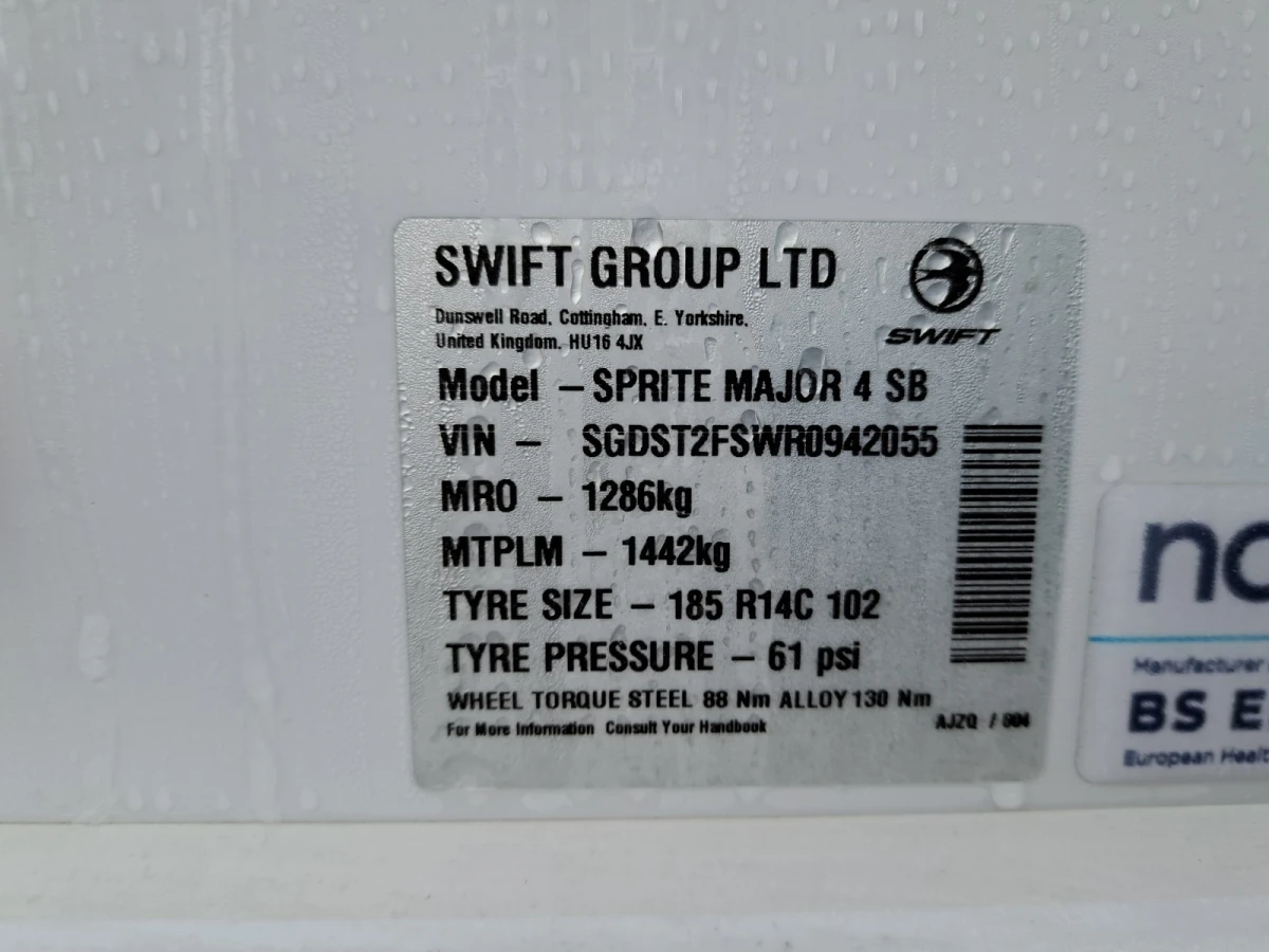 Including Gas bottle, Gas pigtail, Leisure Battery, 25 Metre mains cable, Aquaroll, Wastemaster, Hitch Lock, Number Plate and Step.